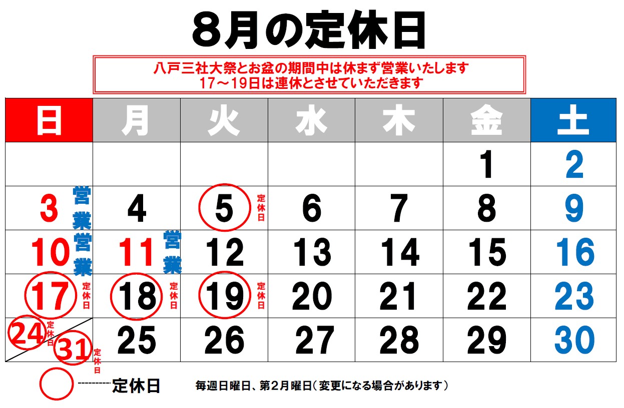 営業カレンダー